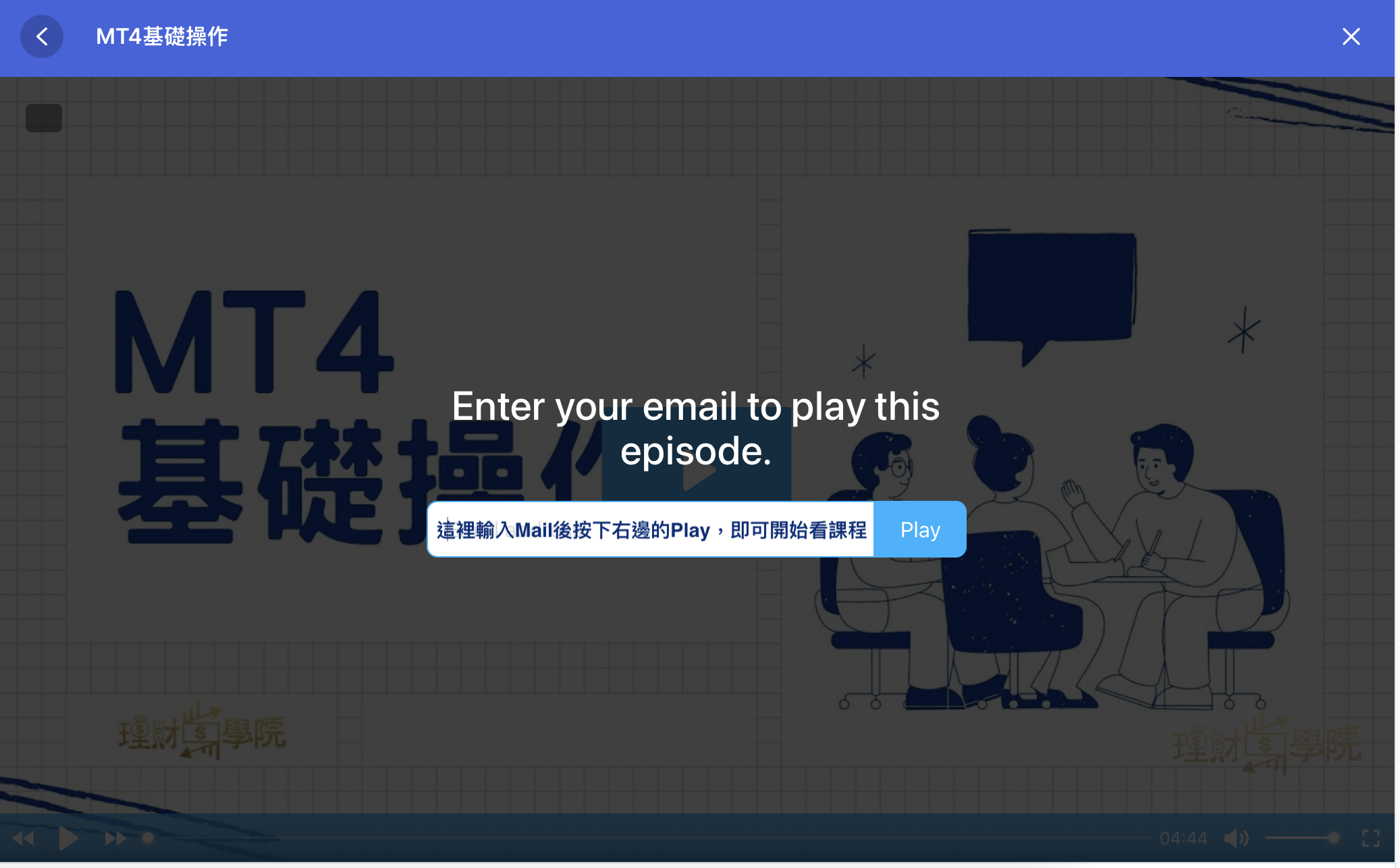 請在空白處輸入Mail後按下右邊的Play,即可開始看課程囉!